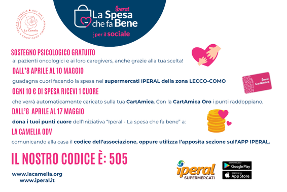L’associazione La Camelia o.d.v. è fondata sul principio del dono e della conoscenza gratuita. Sostenendoci aiuterai a migliorare la prevenzione e la ricerca in ambito oncologico.